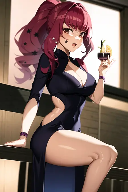 Yunaka is a bit of a challenge due to the stars on her face and in her hair. I've noticed strengths 0.7-0.8 are good for catching her likeness with limited success on the stars. 0.9+ seems to do a good job at both with the tradeoff of more difficulty changing hair/outfits.