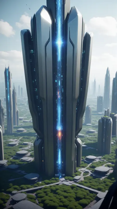 a futuristic city with a futuristic tower in the background
