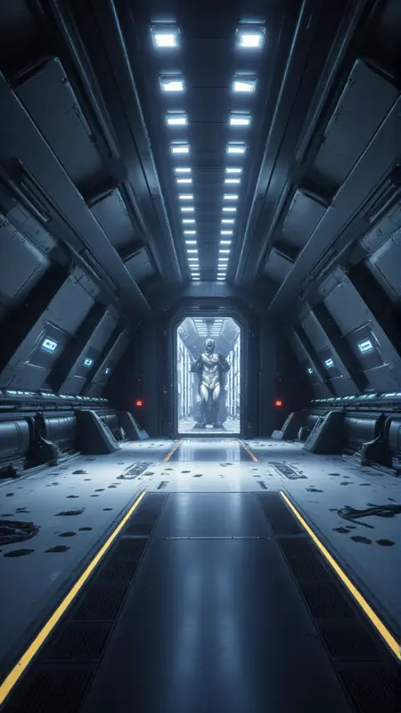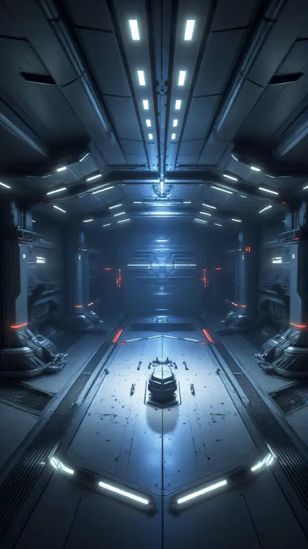 a sci - fi spaceship interior with a bright light coming from the ceiling