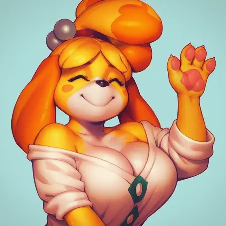 애니멀 크로싱의 이자벨, 그러나 이는 아티스트 Robaato가 그린 캐릭터의 묘사이다. 나는 이 아티스트가 캐릭터를 그리는 방식이 마음에 든다. 하지만 불행히도 이 아티스트는 몇 년 전에 얽힌 논란으로 인해 자신의 대부분의 소셜 미디어 콘텐츠를 삭제했다.
