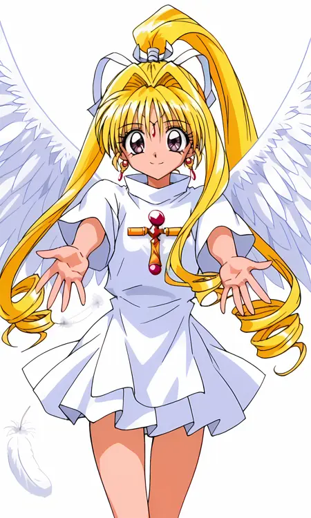 변환 복장 1: KKJs2, 아티스트 A 스타일, 보라색 눈, 이마 장신구, 금발 머리, 매우 긴 머리, 드릴로 만든 긴 측면 머리카락, 뒤쪽에 한 개의 높은 드릴 페니테일, 흰색 머리 리본, 귀걸이, 단순한 흰색 복장, 접힌 세로 칼라, 흰색 칼라, 어깨 장식 없음, 어깨에 빨간 리본 장식 없음, 느슨한 허리, 빨간 및 노랑 띠 없음, 빨간 로프 달린 장식 없음, 뒤쪽에 큰 노랑 bows 없음, 흰색 옆 슬릿과 긴 셔츠 꼬리, 흰색 짧은 소매, 흰색 짧은 소매에 빨간 액센트 없음, 짧은 빨간 안쪽 소매 없음, 가슴에 십자가 장식, 벌거벗은 손, 흰색 계층적 미니스커트, 벌거벗은 다리, 벌거벗은 발 (부정 프롬프트: 빨간 안쪽 옷, 흰색 상의, 짧은 소매에 빨간 액센트, 짧은 빨간 안쪽 소매, 노출된 팔 아래부분, (어깨 장식:1.3), (어깨의 빨간 장식:1.3), 금팔찌, 흰장갑, 빨간 및 노랑 띠, 빨간 로프 달린 장식, 큰 노랑 bows, 계층적 미니스커트, 빨간 미니스커트, 앞뒤를 덮는 흰색 앞치마, 흰색 자전거 반바지, 허벅지 커버, 자전거 반바지와 부츠 사이의 노출된 허벅지, 흰색 부츠, 부츠를 감싸는 빨간 십자형 리본)