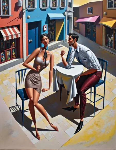 "슬렌더 큐비즘"은 길고 날씬한 형태의 개념과 큐비즘의 조각난 기하학적 요소를 융합합니다. 이 스타일은 단순화된 배경과 일치하는 독특하고 흥미로운 캐릭터를 창조하도록 설계되었으며, 색상과 형태의 흥미로운 융합을 이룹니다.
