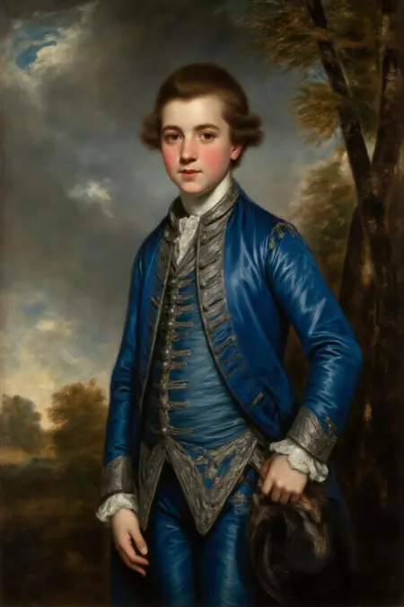두 화가의 스타일에는 어느 정도 유사점이 있지만, 저 개인적으로는 군인 초상화에 자주 등장하는, 어두워지는 하늘 앞에 단단한 표정으로 서 있는 인물들을 그린 리놀즈의 더 고전적이고 '영웅적'인 스타일을 선호합니다. 하지만 많은 이들은 게인즈버러의 더 가볍고 우아한 스타일을 선호합니다.