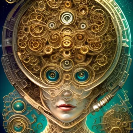“时间的分形流动延伸向地平线,超现实的分形交织循环路径,戏剧性的电影视角,精细而纤细、错综复杂、装饰繁复的线条,几何抽象杰作,数字艺术,量子波形追踪,墨线绘画,视觉错觉”