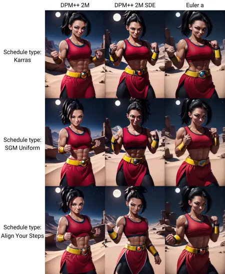 - 샘플링 방법: Euler a, 스케줄: SGM Uniform (리뷰 이미지에서 3가지 다른 샘플링 방법과 스케줄 유형의 비교를 볼 수 있습니다)