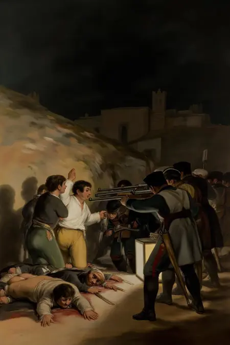 ナポレオン占領下でフランス軍がスペイン市民を処刑する様子を描写。