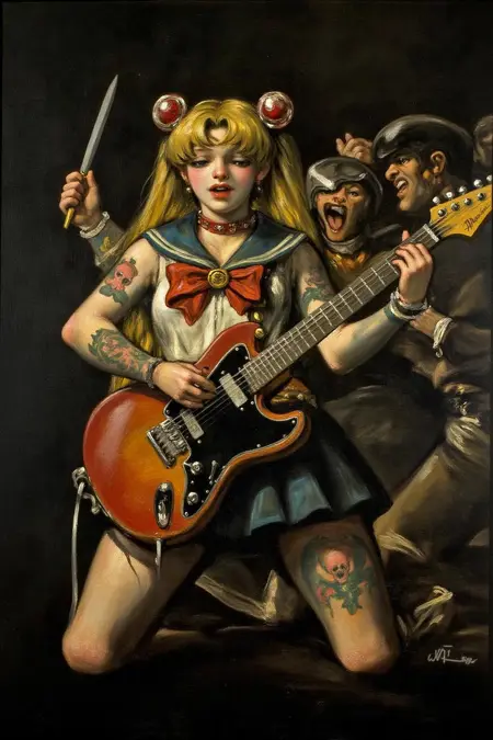 これは、彼の宮廷画とは明らかに大きく異なります。恐怖や変なイメージを見たくない場合は、代わりにこのゴヤ LoRA をお試しください 😅:/model/1113107/spanish-masters-francisco-goya-court-splendor-portrait-style