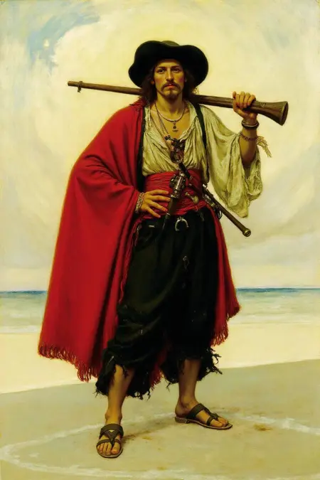 彼の海賊イメージ(三つ角帽、ふくらんだコート、ドラマチックなポーズ)は、今日の映画、書籍、ポップカルチャーにまだ影響を与え続けている。