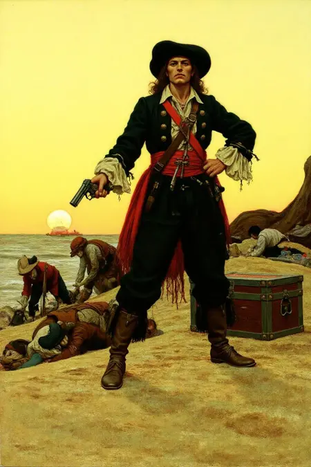 🎨 彼の海賊挿絵 — 海賊、バッカニア、冒険者のドラマチックな描写は、現代における彼らのイメージの基準を築いた。