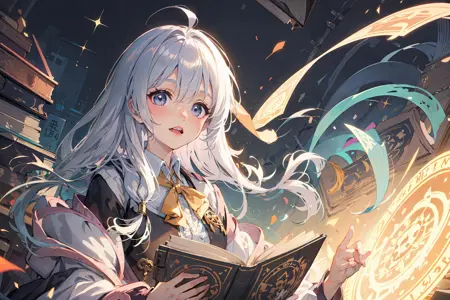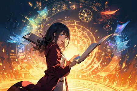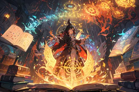 就是这种很绚丽的,魔法光环交织在一起的感觉,可以搭配其他角色lora一同使用,作为一种画风lora。
