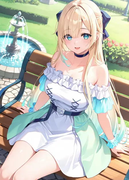"choker, strapless layered dress, criss-cross halter, waist bow,"