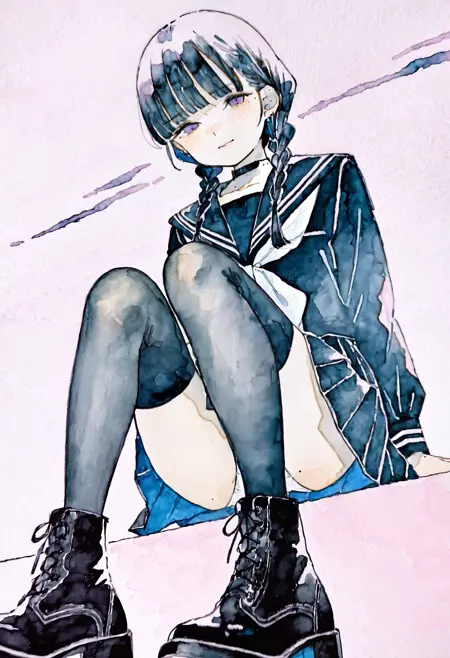 1girl, solo, anime screencap, limited palette, no lineart, watercolor \(medium\), painting \(medium\), traditional media,