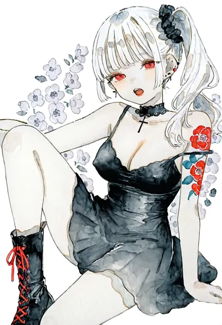 1girl, solo, b3Jp, traditional media
