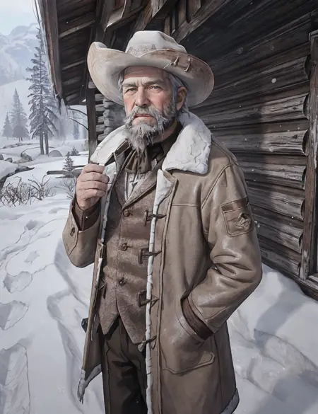 Trigger Words: cav_rdrcolter is the main trigger. You can also use place (the training class) dilapidated cabin snow winter frozen stream mountain log cabin stone cabin or broken fence. I'll be uploading a wide range of example images with full metadata, so take a look at those for some suggested starting prompts.