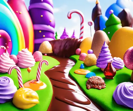길, 도로, 숲, 굽이진 길, 계곡, 꽃, 초콜릿 바, 무지개, 스프링클, 휘핑크림, 딸기, 체리, 초콜릿 스프링클, 나선형 나무, 나선형 탑, 계단, 사막, 계단, 사막, 디저트, 캔디로 만든 집, 집, 건물, 캔디 마을, 캔디 마을, 건축, 아라비아식 건축, 다리, 달 다리, 캔디 막대 숲, 대나무, 껌 숲, 아이스크림 산, 초콜릿 언덕, 꿀, 모래, 바다, 무지개 지형, 뒤집힌, 눈, 눈 내리는, 눈 덮인 지붕 등.