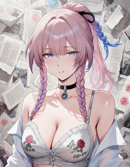 부드러운 몸매와 매력적인 비례를 선호하는 핸드드로잉 만화/애니메이션의 화려한 스타일입니다. 얼굴은 부드럽고 대형 감정적 눈을 특징으로 하며, 선은 깔끔하고 자신감 있게, 디테일은 최소화되지만 표현력이 뛰어납니다. 자세는 가까이 위치하고 약간 단축된 형태로, 부드러운 피부와 곡선을 암시하기 위해 미묘한 하이라이트와 음영이 적용됩니다.