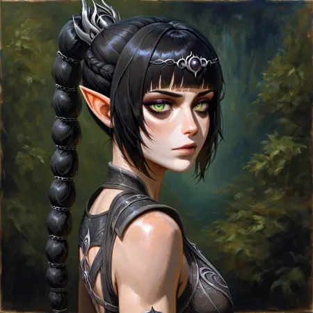 ゴシック油絵 — 100枚以上の画像データを含み、GPTによる生成物、私が作成したダークファンタジー油絵用LoRA、そして実際にゴシック油絵をミックスしたものです。