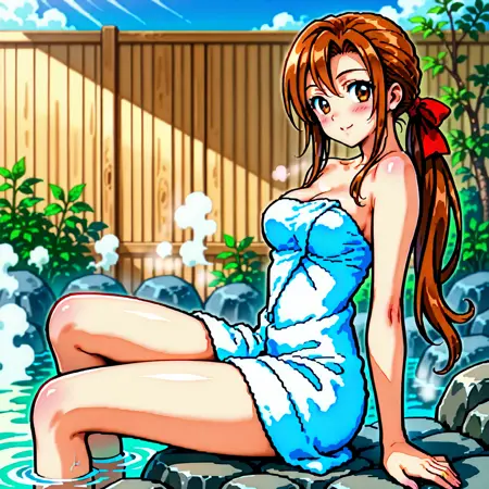 SFC SUPER桃太郎電鉄HAPPY 女風呂 登別 茶髪ポニーテール少女 / SFC SUPER momotarou dentetsu HAPPY onna-buro noboribetsu brown ponytail girl.