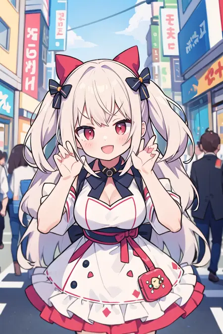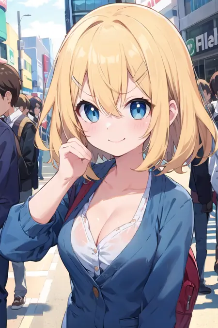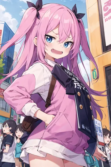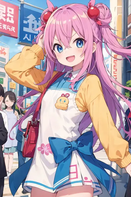 たまにヘアピンがたくさんくっついた状態になってしまうことがあります。その場合、ネガティブプロンプトにhair clipを記述するか、NegPiP拡張機能を入れてポジティブ側に(hair clip:-1)と記述し、打ち消してください。