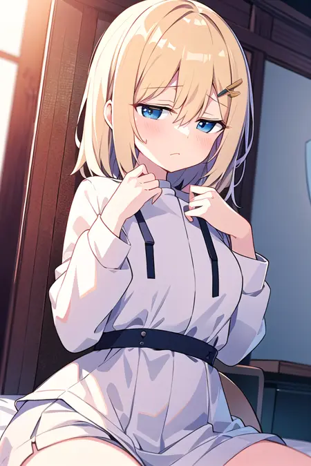 LoRAを有効にするだけで動作しますが、困った表情を出したい場合はupsetやworriedを追加するとよいでしょう。困った表情以外にも使用できます。