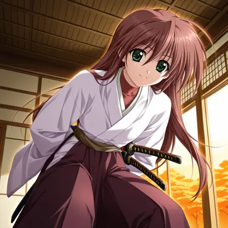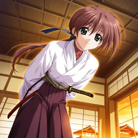 马尾版本。同为剑士造型,若放下发辫,则直接使用外貌Prompt即可。