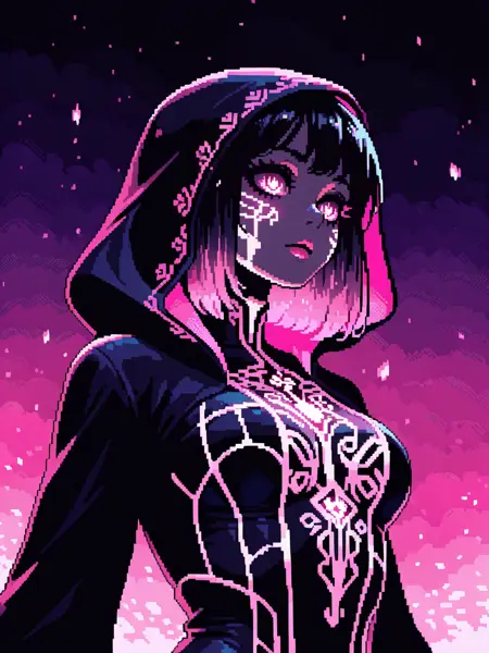 Pixel Illustrious は、レトロなアニメやサイバーファンタジーのスタイルで鮮やかで表現力豊かなピクセルアートを生成するチェックポイントです。ネオンが輝く都市から満開の野原まで、目を引くヘアスタイル、詳細な衣装、未来派のアクセサリー、独自の背景を持つ印象的な女性キャラクターの作成に最適です。このスタイルは、16ビットまたは32ビットのビデオゲームを彷彿とさせるアートを、柔らかい色調、輝く瞳、高い感情的表現力で生み出すことに優れています。
