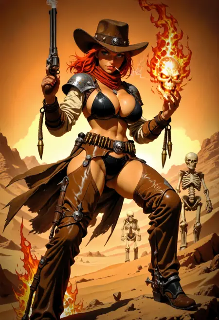 🌈 衝撃的な色再現:ガリガリの錆色から叫ぶようなネオンまで、このカウボーイはパレットを汚すことなく、物語を描き出す。