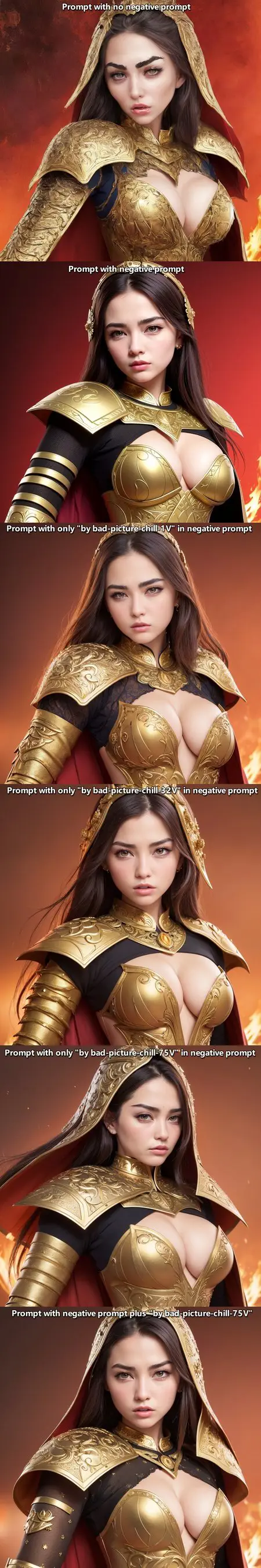 이 임베딩은 1 벡터, 32 벡터, 75 벡터 버전으로 제공됩니다. 벡터 수가 높을수록 더 세밀한 효과를 얻을 수 있지만, 이미지가 지나치게 과도하게 처리되어 '얕은 볶음'처럼 보일 수 있습니다. 75 벡터 버전과 함께 업로드한 비교 이미지를 확인해 보세요. 제대로 확대하려면 오른쪽 마우스 클릭 후 "새 탭에서 이미지 열기"를 선택해야 할 수도 있습니다.
