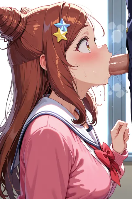 schooluniform: 갈색 머리, / 빨간 머리, 콘 모양 머리묶음,