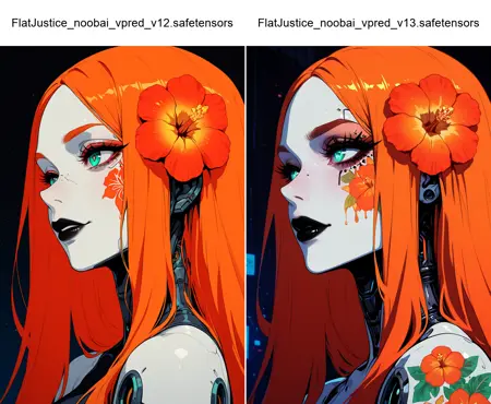 PSA(2025年4月11日): みなさん、突然このモデルが人気を博し始めたようで、皆さんが気に入ってくださって本当に嬉しいです。これは私にとってとても大きな意味があります ❤️❤️ 画像生成を楽しんでいたのは少し前のことでした(3Dプリンターを購入して、今ではわいふを印刷して塗装しています :3)。しかし、もし何か批評やフィードバックがあれば、ぜひ教えてください。ここにコメントを残していただいても、DMで送っていただいても、Discord(名前はHapseです^^)で見つけていただいても構いません ❤️❤️ ------ Flat Justiceは、noobai v-predチェックポイントといくつかの優れたLoRAを基にした2D/ベクタートレース(Danbooruウィキ)スタイルのアニメチェックポイントです。