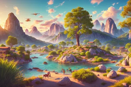 style of (hoppagames:1.0), [X], (Low-angle perspective), (natural lighting), (Wide-angle lens capturing scenery), hidden objects games, video game concept art, (8K Unity wallpaper), fine details, award-winning image, highly detailed, 16k, cinematic perspective, ((video game environment concept art style)), pretty colors, cinematic environment