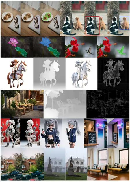 그러나 Qwen-Image는 단순히 생성하거나 편집하는 데 그치지 않고, 이해합니다. 객체 탐지, 의미적 분할, 깊이 및 엣지(Canny) 추정, 신규 시점 합성, 초해상도 등 이미지 이해 작업을 지원합니다. 이 기능들은 기술적으로는 별개이지만, 모두 심층적인 시각적 이해를 바탕으로 하는 전문적인 이미지 편집 형태로 볼 수 있습니다.