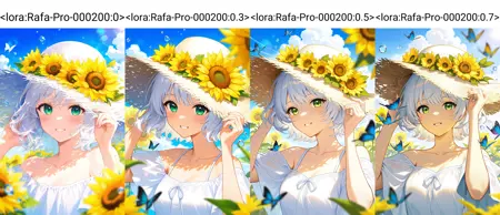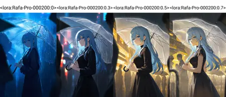 这个版本 (Rafa-Pro) 的训练集经过了二次挑选,并少量混合了其他风格相似的画师作品。因此它严格上讲不是一个专注复刻 Rafaelaaa 画风的模型,而是一个基于我个人审美的风格化模型。