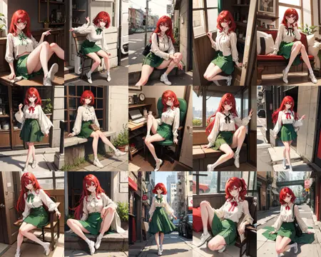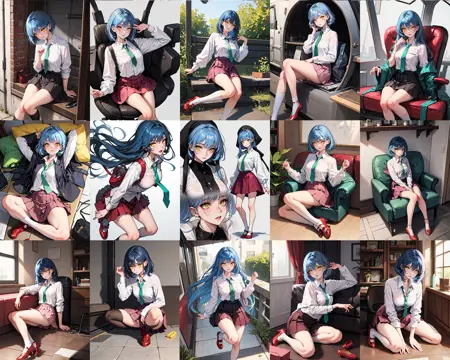 第四步:在正向提示中输入:一个可爱的女孩,白色衬衫配绿色领带,红色鞋子,蓝色头发,黄色眼睛,粉色裙子