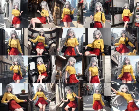 在测试中,共生成 20 张图像,多数情况下成功率高达 100%。但若输入“绿色裤子”,可能会出现一些蓝色牛仔裤;裙子也可能会出现黑色裙子。这些“错误”是可能出现的。