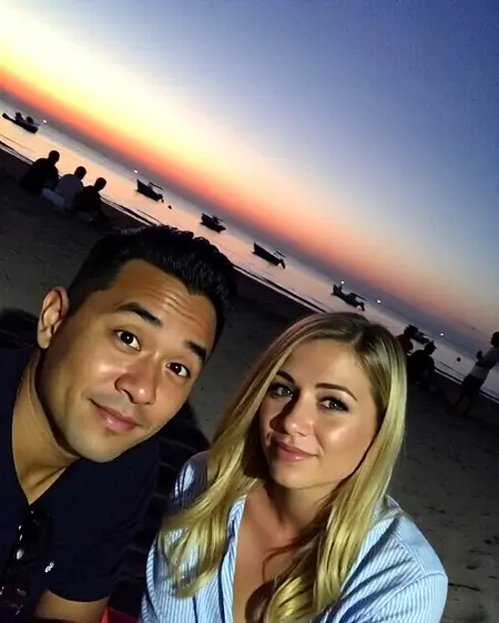 映画館の赤い座席に座るアジア系女性を側面から撮影。彼女は頭を少し横に向け、笑顔でカメラを見つめている。黒いレザージャケットを着ており、肩まで長い髪が少しカールしている。右手には大きな紙製コップを握り、その表面には赤と白の模様が印刷されており、吸管が差し込まれている。彼女はその吸管から飲み物を飲んでいる。左手には、ペーパータオルに包まれたサンドイッチやハンバーガーのような食べ物を持ち、口に運ぼうとしている。