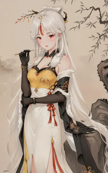 シーンアシスタントワード(スタイルトリガーキーワードと組み合わせて、古風な効果を強化できます。関連ワードが多いほど効果が向上します):willow branches, willow tree in background