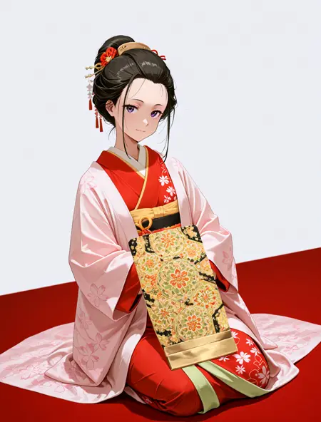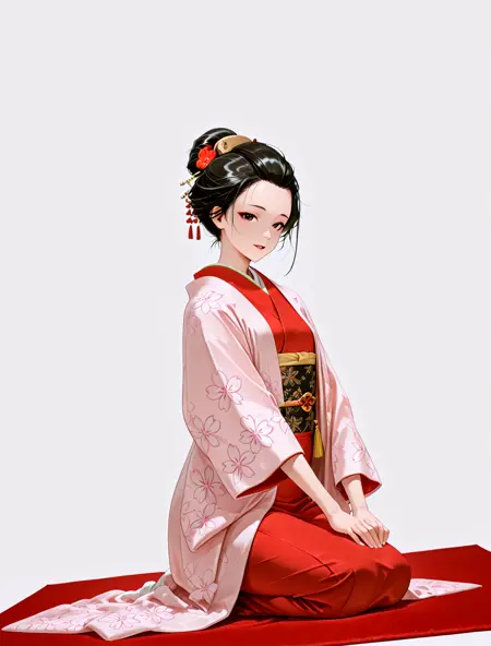 標準のプロンプトでも着物や花魁なら出るのですが、着物は現代の晴れの日に着るもので日常的に着るものは出ません。同じく花魁も現代の観光地で見かける記念撮影用コスプレです。