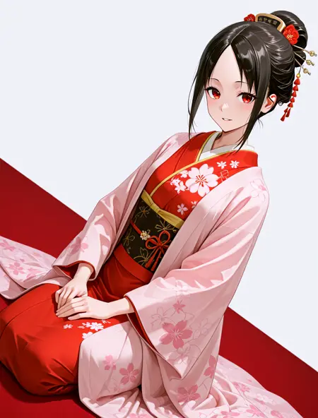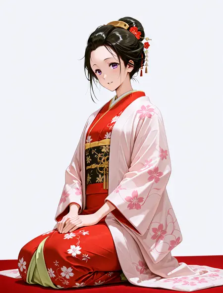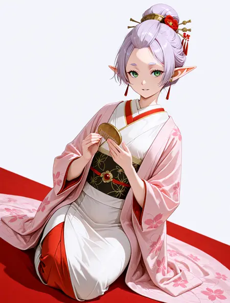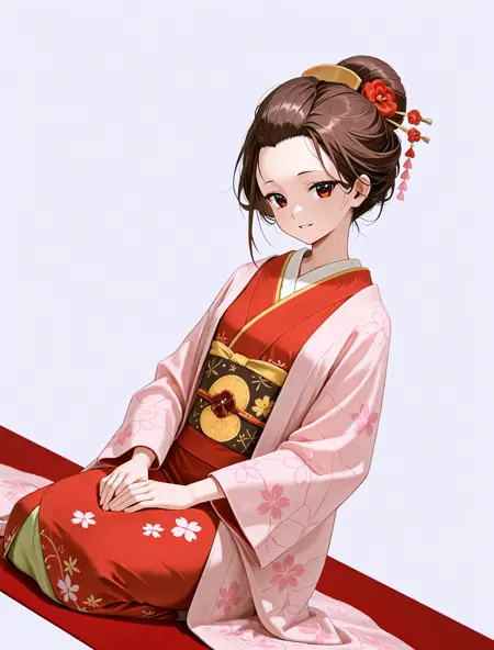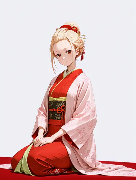 Trigger, hairstyle, kimono, hairpin, comb(トリガー、髪型、着物、かんざし、櫛) : y0sh1wara_yuujyo, y_kamiyui, y_red_kimono, y_kanzashi, comb