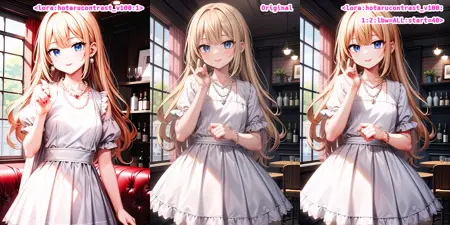 LoRA를 활성화하면 바로 작동합니다. 양의 강도로는 고대비, 음의 강도로는 저대비가 됩니다.