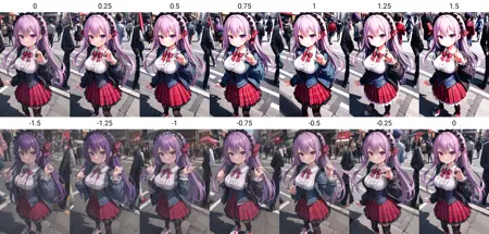 구성에 대한 효과를 줄이려면 LoRA BlockWeight 확장기능의 새 기능인 스텝 제한을 사용하는 것이 좋습니다. 이 경우 LoRA 가중치를 강화하세요(약 1.5–2). 예: (전체 샘플링 스텝: 50)
