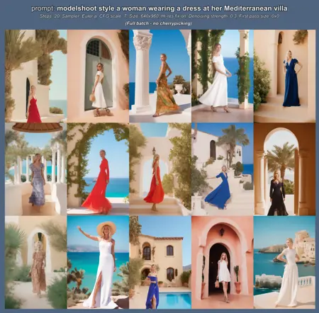 Modelshoot is a Dreambooth model trained from 1.5 with VAE on a diverse set of photographs of people. The goal was to create a model focused on full to medium body shots, with an emphasis on cool clothing and a fashion-shoot aesthetic. A result of the composition is that when your subject is further away, their face will usually look worse (and for celebrities, less like them). This limitation of training on 512x512 can be fixed with inpainting, and I plan on revisiting this model at higher resolution in the future.