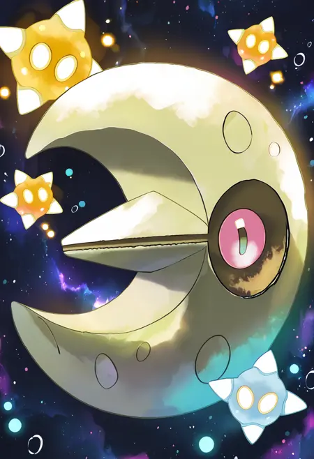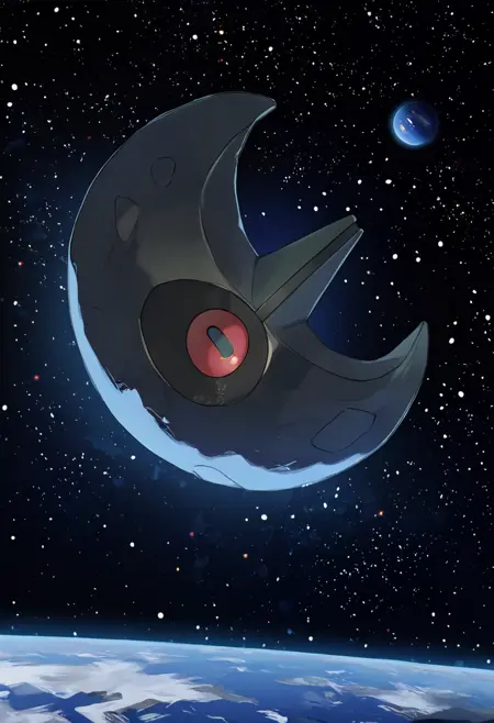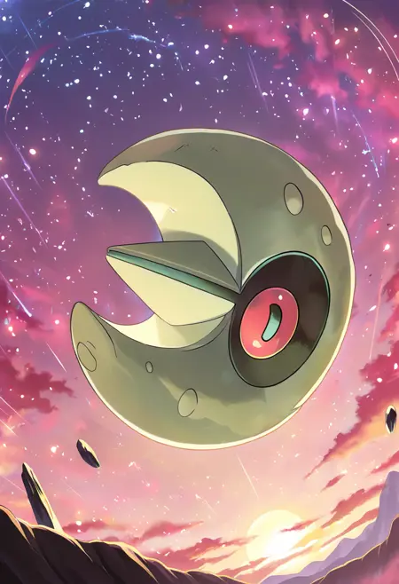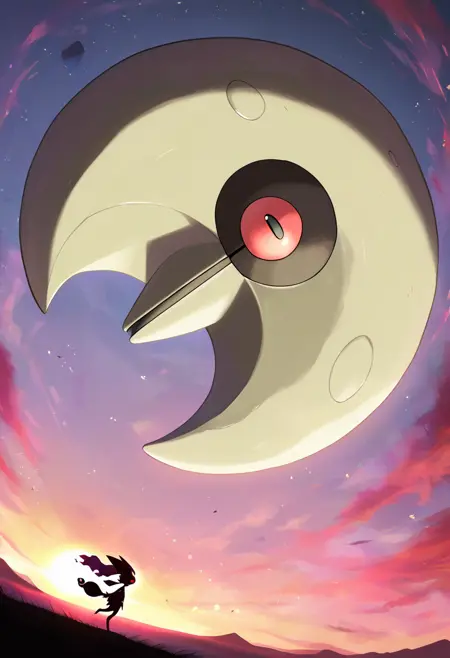 触发词: lunatone, pokemon \(creature\), red eyes, colored sclera