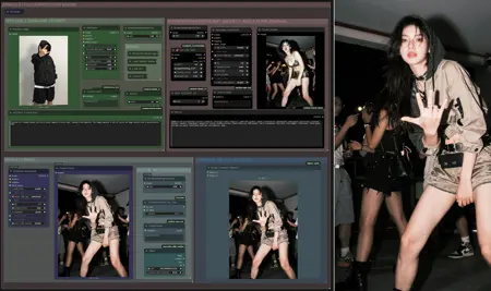 Workflow for use with XUPLX to merge image generations together with full control. Merge mood with composition to create eye-popping images. Merge poses and clothes, clothes and ambiance, ambiance and dinosaurs (why not?)