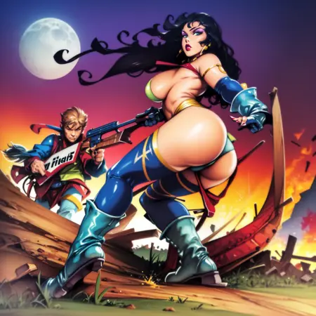 This LoRA is too nsfw, so expect to see a lot of nude or semi-nude womans in your generated images. Although the LoRA has not been specifically trained with the famous character Lorna, it is very easy to generate her without the need for other LoRA. You only have to write your prompt like this: