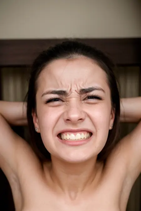 An expression that it's almost impossible to coax from SD otherwise, clenched teeth and neck from exertion or disgust.