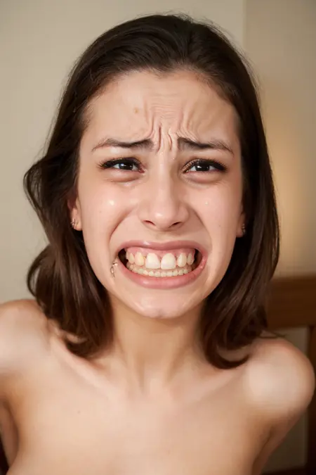 This was a really hard one and I'm still not totally thrilled with the outcome. SD kind of seems to just legitimately not know that the bottom row of teeth exist. Fascinating really. If you need it to work harder, I recommend adding emphasis to "grimacing" in the prompt, not the LoRA weight. It works up to 1.6 or so for me pretty well.