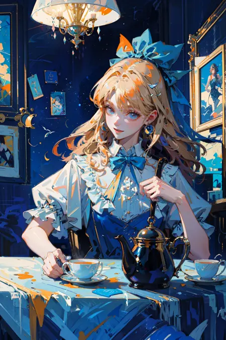 This is a stylized model that generates anime characters, my goal of the model is to be able to create a more artsy touch to the work, it will result in a blends of paint that could result in complementary color shadings with cool undertones. Depending on the version, they may product various brushstroke or fluid art style across the work, leaving behind a more abstract piece with deliberate unblended highlights/shading, and sometimes even simultaneous contrast style. As my usual, please inpaint whenever you need as this model series may get wild sometimes.