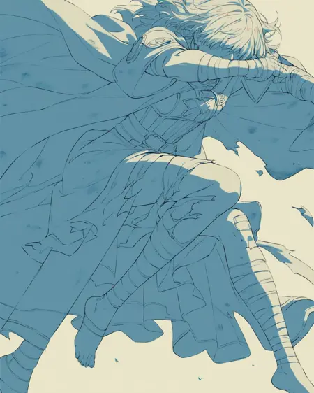 Recommended Prompt: oamhfs, simple background, monochrome, blue theme