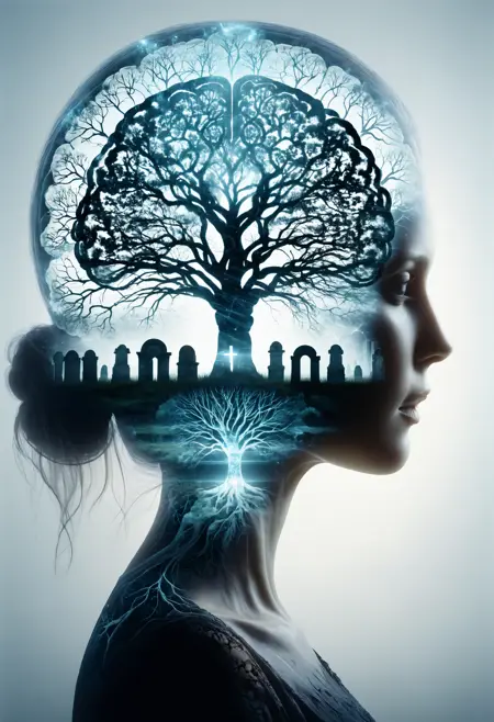 dvr-wwyt, a woman thinking of a car, double exposure lora:dvr-wwyt:0.8